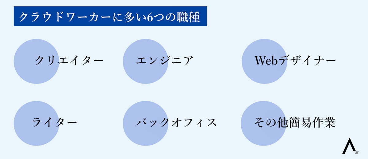 クラウドソーシングサービスを使って働くクラウドワーカーは、オンラインで作業を完結できる職種やクリエイティブな職種の人が多いです。