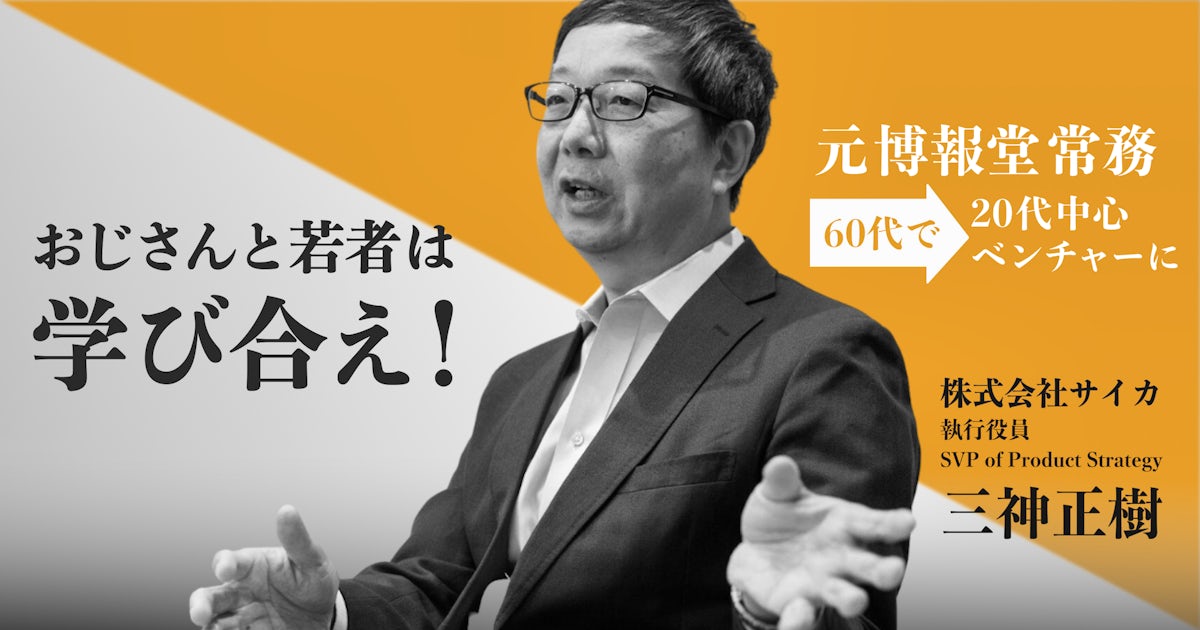 今回は20代中心のベンチャー企業「株式会社サイカ」へ、唯一の60代としてジョインした元博報堂常務執行役員の三神正樹さんにご自身の経験談や多様性に対する考えをお聞きしました。